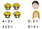 | Division by 2 or 3 | 9 ÷ 3 = |