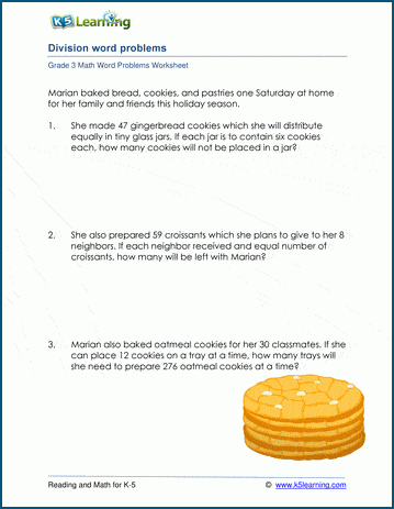 These grade 3 word problem worksheets require division "with remainders" to solve. The arithmetic is relatively easy (numbers between 1 and 100).