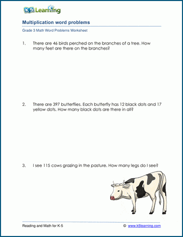 For extra practice, following are a mixture of supplementary third grade multiplication word problems, most requiring multiplication in columns.