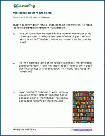 These word problems require column form multiplication of varying difficulty. Students should be familiar with column form multiplication before attempting these word problems.