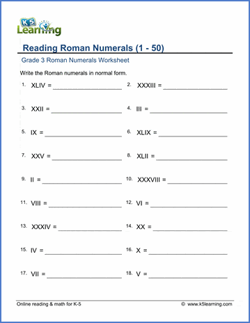 Grade 3 Roman numerals worksheets