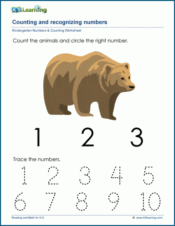 Below are kindergarten worksheets introducing counting and reinforcing number recognition from 1-20. With one worksheet per number, students count the animals and match it the count to one of the numbers shown.