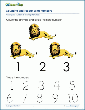 Count and recognize the number 4 Count and recognize the number 5Explore all of our learning numbers worksheets (recognizing and printing numbers), counting worksheets (counting objects, skip counting, counting backwards) and comparing numbers worksheets ("more than", "less than", ordering numbers).