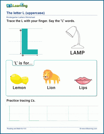 These worksheets introduce the letter L and give students practice in recognizing L's, using "L" words and writing L's. Both upper and lower cases are considered.