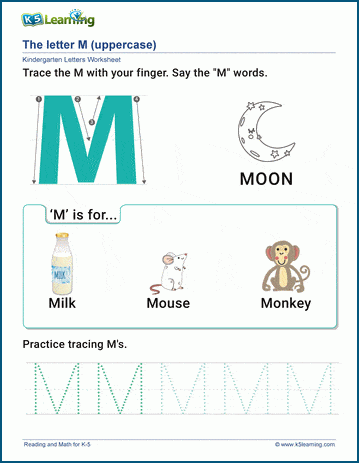 These worksheets introduce the letter M and give students practice in recognizing M's, using "M" words and writing M's. Both upper and lower cases are considered.