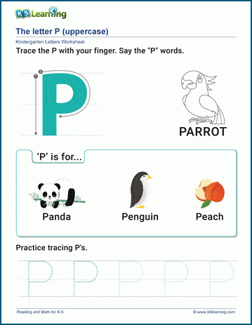 These worksheets introduce the letter P and give students practice in recognizing P's, using "P" words and writing P's. Both upper and lower cases are considered.