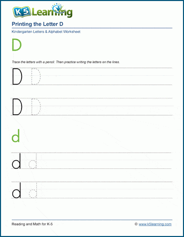 Students print the letter "D" in both upper and lower case. Practice until perfect with these printable worksheets.