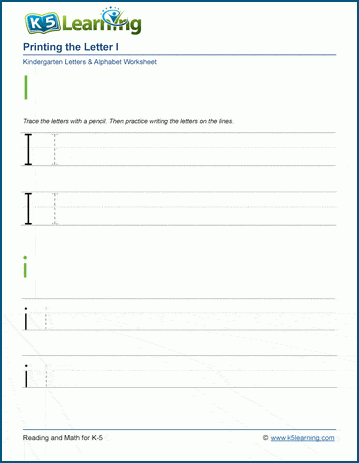 Students print the letter "I" in both upper and lower case. Practice until perfect with these printable worksheets.