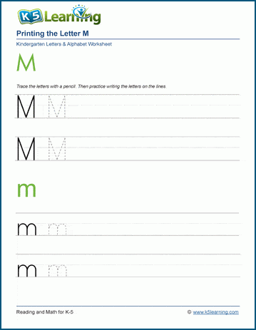 Students print the letter "M" in both upper and lower case. Practice until perfect with these printable worksheets.