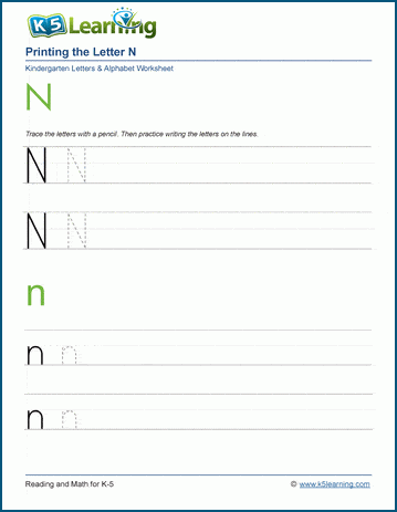 Students print the letter "N" in both upper and lower case. Practice until perfect with these printable worksheets.