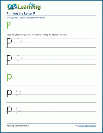 Students print the letter "P" in both upper and lower case. Practice until perfect with these printable worksheets.