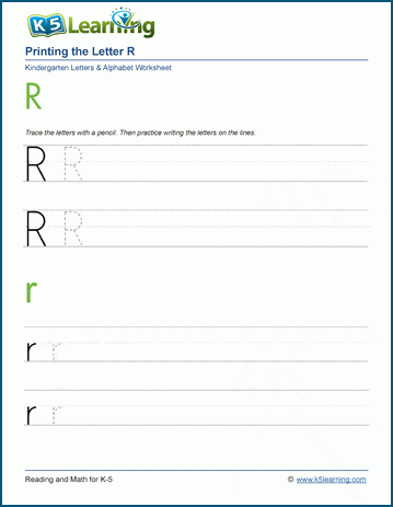 Students print the letter "R" in both upper and lower case. Practice until perfect with these printable worksheets.
