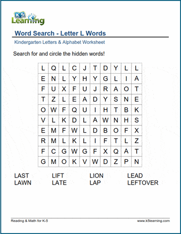 Students find eight words beginning with the letter "L". Word searches are a fun way to improve letter and word recognition.