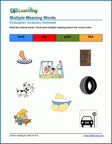 In these worksheets on words with two meanings, we provide additional vocabulary practice for words with multiple meanings such as 'bark' or 'watch'.