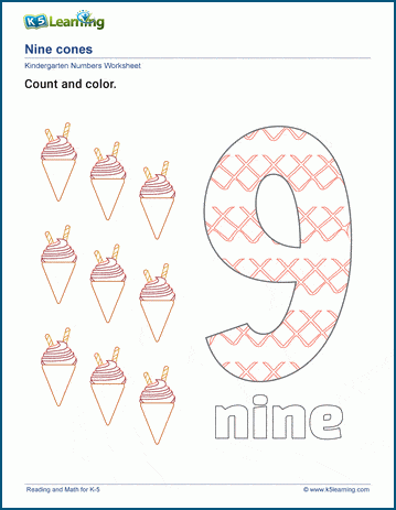 Worksheet #2Students count to nine, color 9's and find 9's on the page.