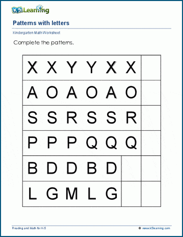 These worksheets help students recognize letters and complete patterns. Students extend the pattern by writing in additional letters.