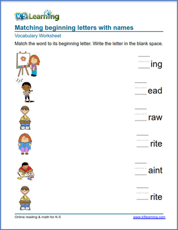 Kindergarten vocabulary worksheets