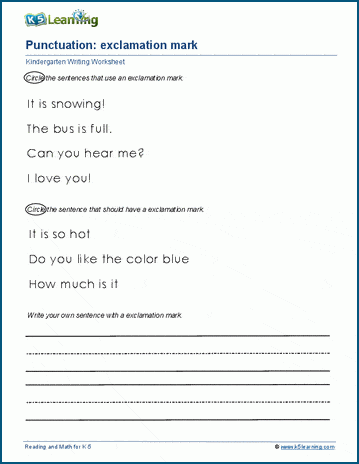 Exclamation marks are placed at the end of sentences which express strong emotions (exclamatory sentences). These worksheets introduce students to the use of exclamation marks.