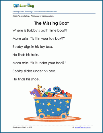 Missing Boat is a short story for kids in kindergarten. Reading comprehension questions follow the story.