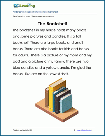 The Bookshelf is a short story for kids in kindergarten. Reading comprehension questions follow the story.