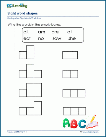 As we learn to read quickly, the shapes of words is one of the clues the brain uses to interpret letters on a page. Students match the given sight words to the shapes of blocks in these worksheets.