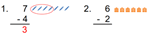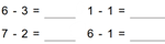 These preschool and kindergarten worksheets help students build basic subtraction skills. The emphasis initially is on subtraction using objects or pictures to help students understand the meaning of subtraction.