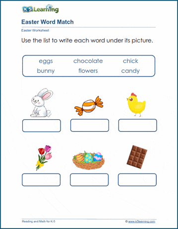Worksheet #5Easter themed vocabulary worksheets, including word match, word scramble, rhyming, categorization of words, and selecting definitions of words.