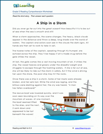 A Ship in a Storm is a short fable for grade 5 students, followed by reading comprehension questions.