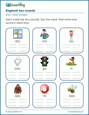 In these phonemic awareness worksheets, students say common words (which are pictured) and then identify the two sounds which make up the spoken word.