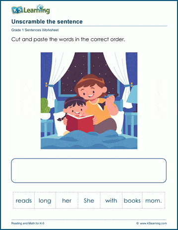 Students unscramble words to make a sentence that matches a picture. A good add-on activity is to ask your student what other sentences they could make from the words.