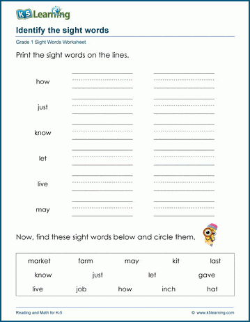 Sight words are high frequency words that readers need to recognize instantly without sounding them out. These worksheets give students practice in printing and recognizing grade 1 level sight words.