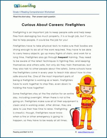 Curious about Careers: Firefighters is a short story for kids in grade 4. Reading comprehension questions follow the story.