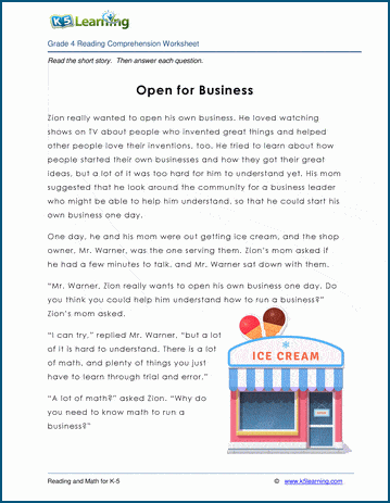 Open for Business is a short story for kids in grade 4. Reading comprehension questions follow the story.