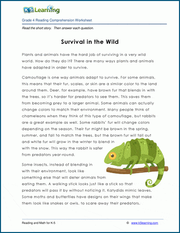 Survival in the Wild is a short story for kids in grade 4. Reading comprehension questions follow the story.
