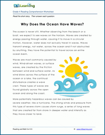 Why does the Ocean have Waves? is a short story for kids in grade 4. Reading comprehension questions follow the story.
