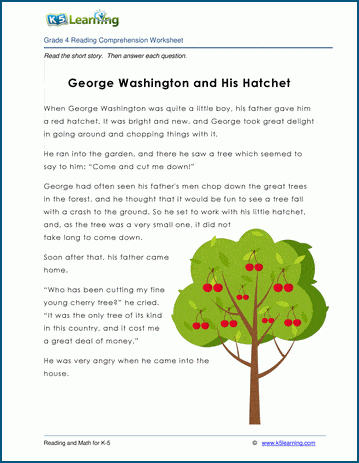 George Washington and his Hatchet is a short fable for grade 4 students, followed by reading comprehension questions.