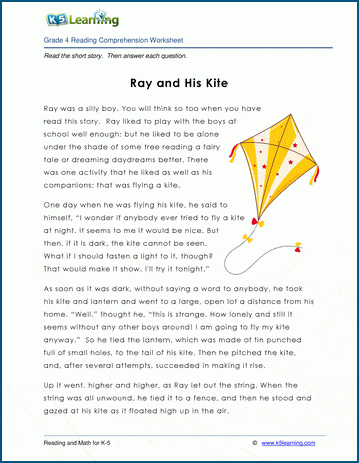 Ray and his Kite is a short fable for grade 4 students, followed by reading comprehension questions.