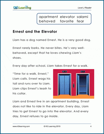 Ernest and the Elevator is a sample story from our level J2 leveled reading workbook.