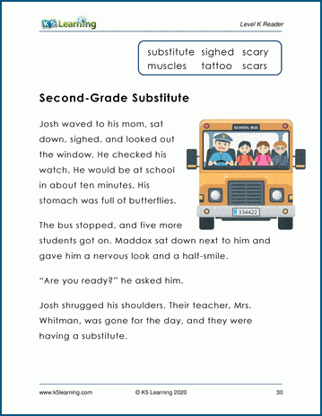 Second Grade Substitute is a sample story from our level K1 leveled reading workbook.