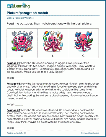 Students read three short texts (50-100 words) and match them against images in these reading worksheets.