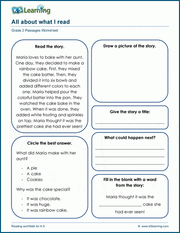 Students read a one paragraph text, and then complete comprehension exercises (Q&A, illustration, adding a title, etc.) based on the story.