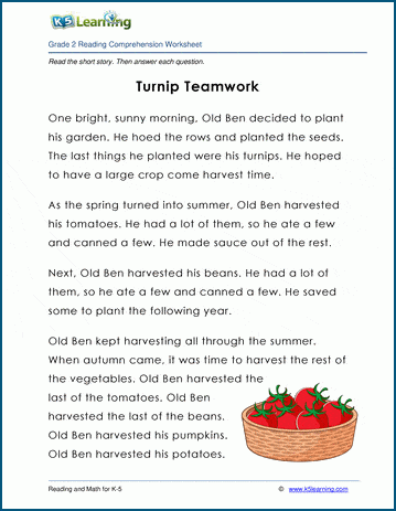 Turnip Teamwork is a short fable for grade 2 students; the story is followed by reading comprehension questions.