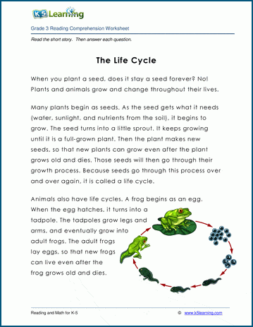 Life cycles is a short story for kids in grade 3. Reading comprehension questions follow the story.