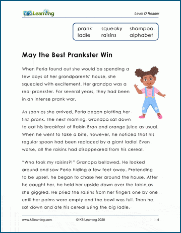 May the Best Prankster Win is a sample story from our level O2 leveled reading workbook.