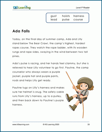 Ada Falls is a sample story from our level P2 leveled reading workbook.