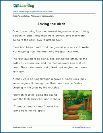 Saving the Birds is a fable for grade 3 students, the story is followed by reading comprehension questions.