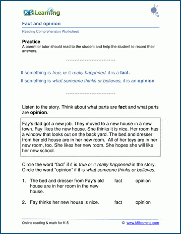 Are the statements facts (they really happened in the story) or opinions (what someone thinks)?