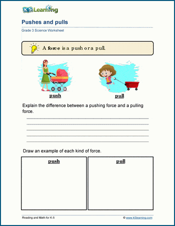 Worksheet #2Students examine basic forces (pushes and pulls) and their impact on movement of objects.