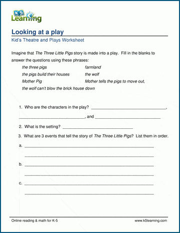 These drama worksheets introduce students to plays and the theater. Younger students will likely need help in reading the worksheets, but can still benefit from working through the exercises with an adult.