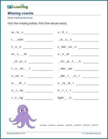In these worksheets, students fill in the missing vowels in grade 5 spelling words.